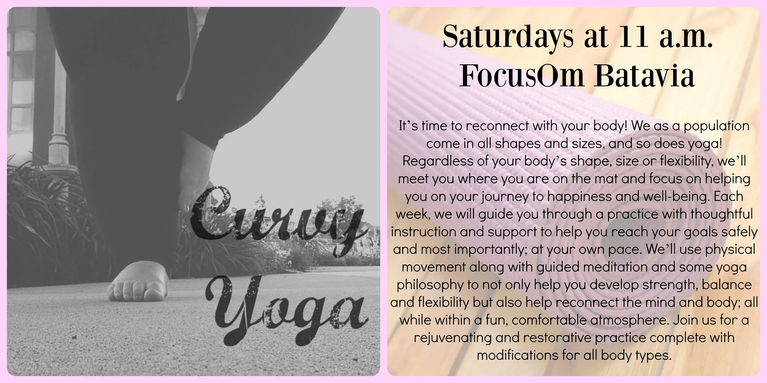 If you want to come see me, Saturdays I'll be teaching Curvy Yoga at 11 a.m. So stop by whenever you can! Class drop-in is $16.